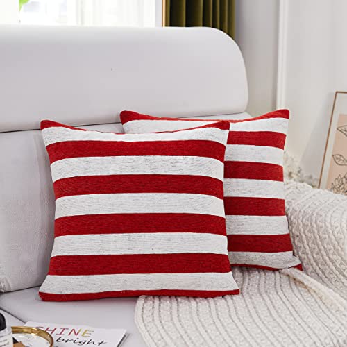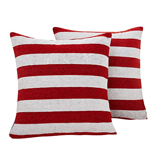 Lieferumfang: 2 Kissenbezüge mit roten und weißen Streifen, 45 x 45 cm, nunmehr Bezüge.