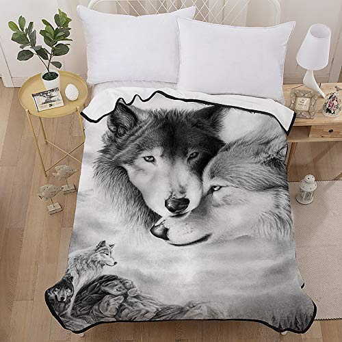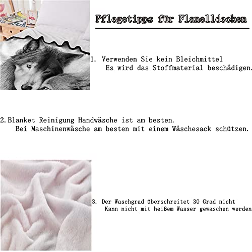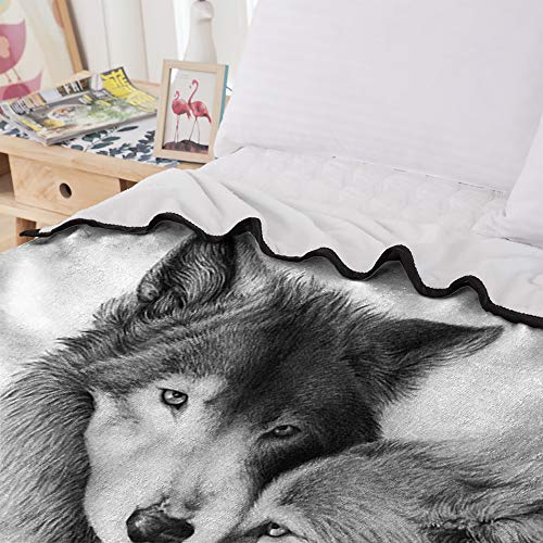 Decke 150×200 cm Kuscheldecken Sanft Flanell Weich Fleecedecke 3D Wolf Wohndecke Flauschige Gabelung& Warme Sofaüberwurf Decke-Weiß&Schwarz