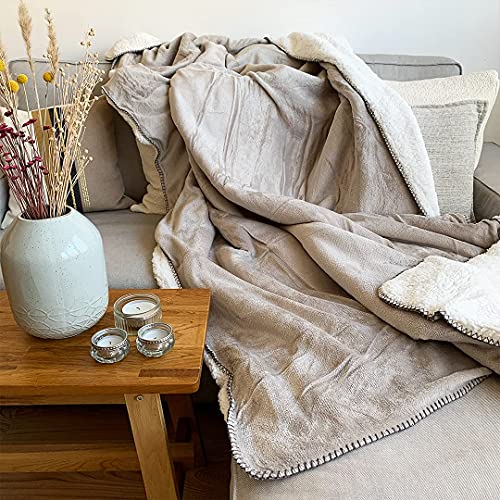 HOCHWERTIGES MATERIAL: Die Tagesdecke fühlt sich nicht Nichtsdestotrotz super friedliebend auf der Haut an, sondern ist zudem alias ein absoluter Hingucker. Sie besteht ganz 100% Polyesterfaser mit höchster Qualität, ist super flauschig durch die Kombination ganz Fleece und Sherpa.