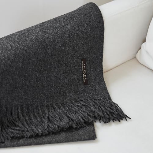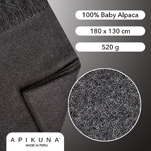 Apikuna® Alpaka Wolldecke aus 100% feinster Baby Alpaka Wolle – 180 x 130 cm in Dunkelgrau – kuschelig weiche & warme Decke – Sofadecke Alpakadecke Kuscheldecke Alpaka Decke Baby Alpaka Decke