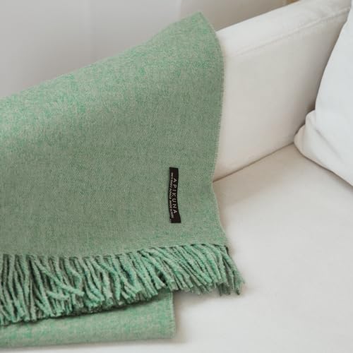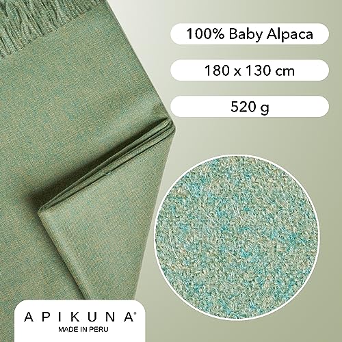 Apikuna® Alpaka Wolldecke aus 100% feinster Baby Alpaka Wolle – 180 x 130 cm in Grün – kuschelig weiche & warme Decke – Sofadecke Alpakadecke Kuscheldecke Alpaka Decke Baby Alpaka Decke