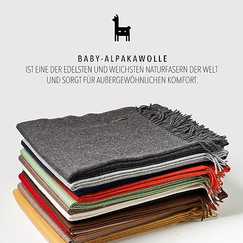 ✅ QUALITÄT: Gefertigt aus 100% mulesingfreie Baby Alpaka Wolle – sehr hochwertige Schurwolle – sehr warm & weich, kratzt nicht, atmungsaktiv. 4 mal wärmer als Decken aus Schafswolle!