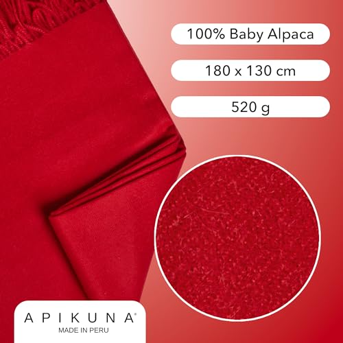 Apikuna® Alpaka Wolldecke aus 100% feinster Baby Alpaka Wolle – 180 x 130 cm in Rot – kuschelig weiche & warme Decke – Sofadecke Alpakadecke Kuscheldecke Alpaka Decke Baby Alpaka Decke