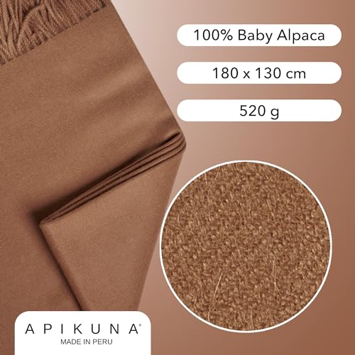 Apikuna® Alpaka Wolldecke aus 100% feinster Baby Alpaka Wolle – 180 x 130 cm in Sand- kuschelig weiche & warme Decke – Sofadecke Alpakadecke Kuscheldecke Alpaka Decke Baby Alpaka Decke