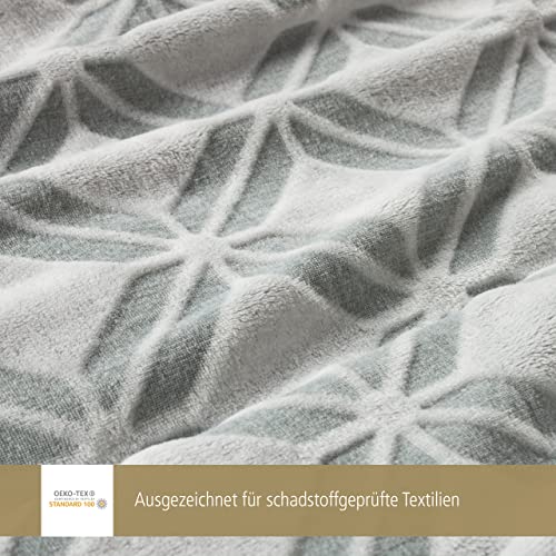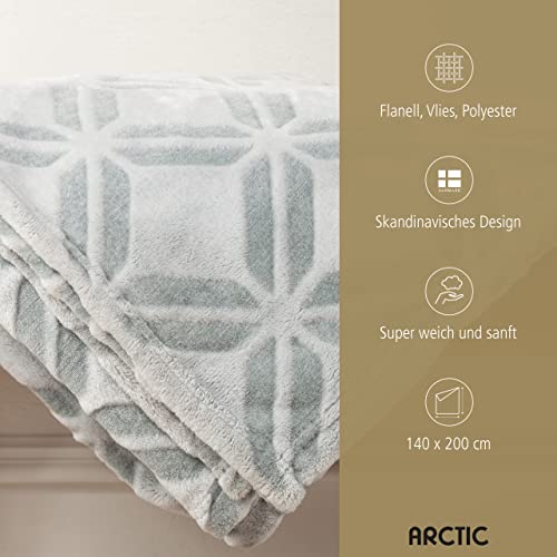 Arctic Fleeceplaid Mega Rebel – Weiche, leichte Flanell Kuscheldecke im Scandi Design – aus pflegeleichter Mikrofaser, Oeko-TEX Zertifiziert – 140 x 200 cm – Grün-Grau