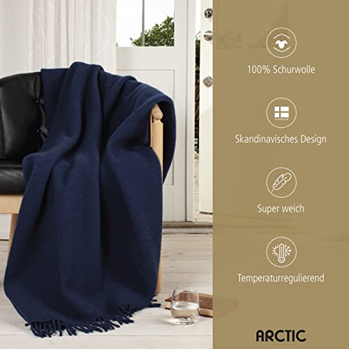 Arctic Kuscheldecke aus 100% Schurwolle, 130×200 I Wolldecke mit Langen Fransen im Scandi Design I Flauschige Decke mit Woolmark-Siegel I als Tagesdecke, Sofadecke & Couch Überwurf