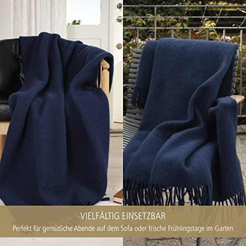 WOHNDECKE MIT HYGGE-CHARME: Natürlich, schlicht & gemütlich. Die hochwertige Wolldecke in Royalblau bringt etwas der herzlich-warmen Atmosphäre, für die der dänische Wohn- & Lebensstil so bekannt ist, in Ihr Wohnzimmer oder Schlafzimmer. Bekannt als ideal für Balkon & Terrasse oder unterwegs im Auto.