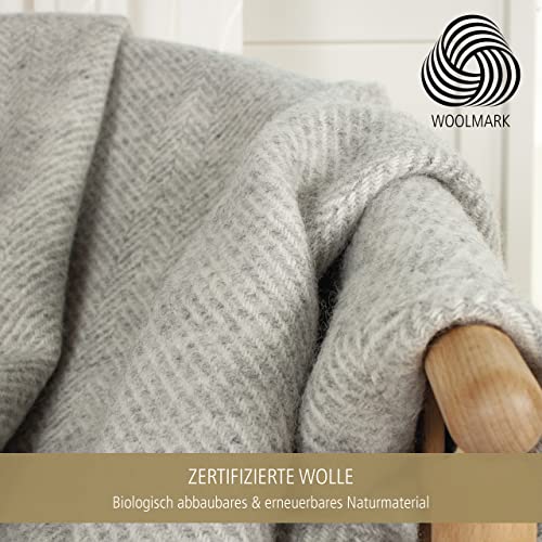 Arctic Wolldecke Herringbone – Hochwertiges Plaid mit Fischgrätmuster im Scandi Design – 100% Schurwolle mit Woolmark Siegel – 130 x 200 cm – Hellgrau