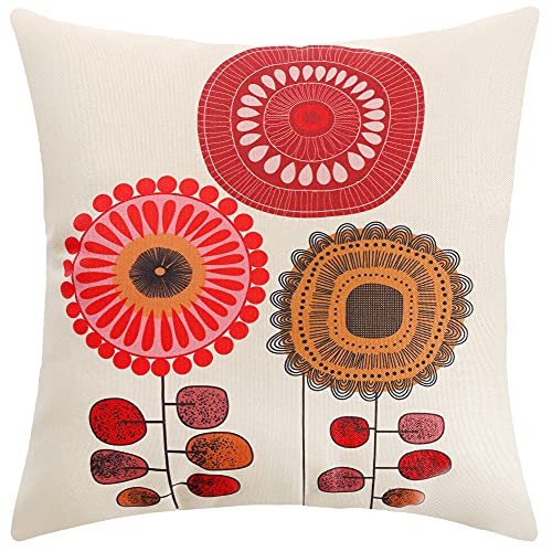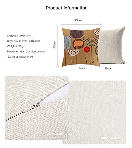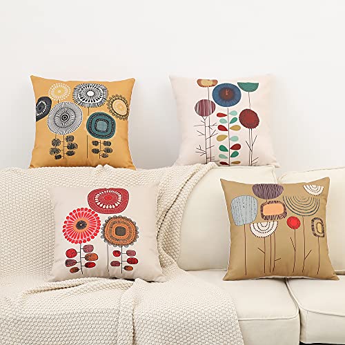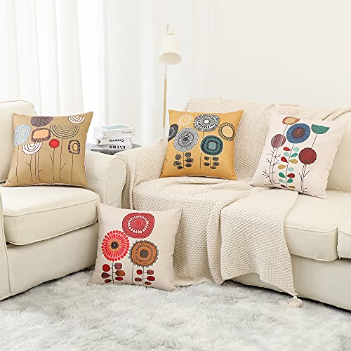 ARNTY Kissenbezug 45x45cm, Kissenhülle Boho Kissenbezüge 4er Set Dekorativ Kissenbezug für Sofa Büro Auto Schlafzimmer Zuhause Dekor (Blumen-Leinen)