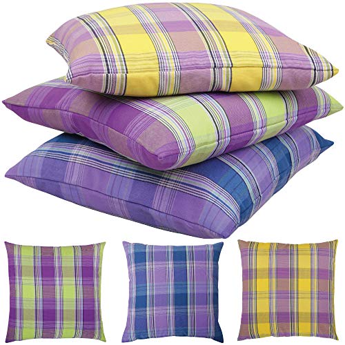 Diese Dekokissen in den attraktiven und frischen Farben sind hervorragend verarbeitet und in drei verschiedenen Kombinationen erhältlich.