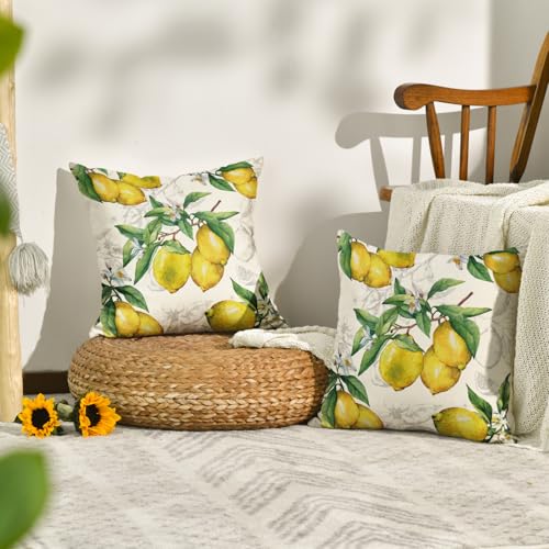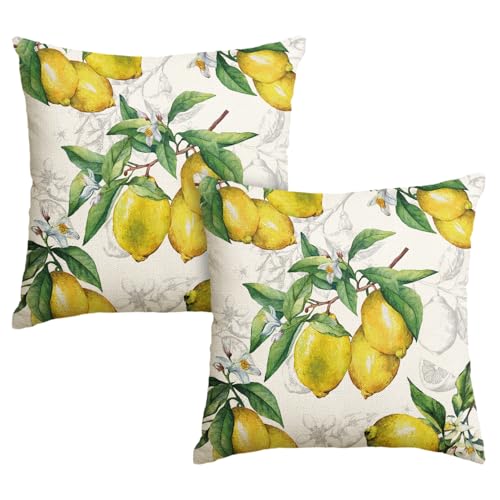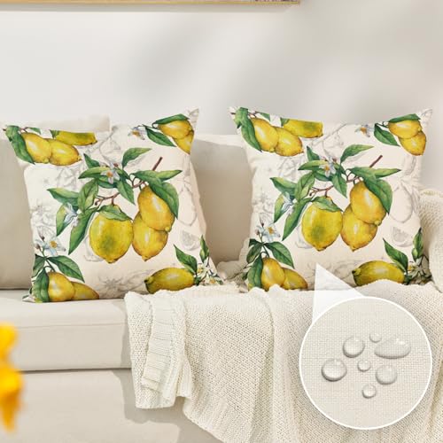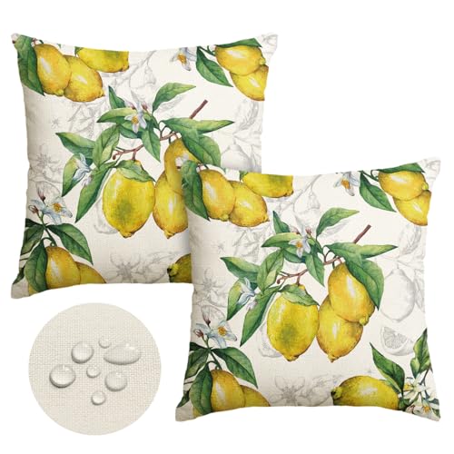 Artoid Mode Blätter Zitrone Sommer wasserdichte Kissenbezüge 2er Set, 45×45 cm Atmungsaktiv Wasserfest Zierkissenbezug Garten Outdoor Kissen Deko