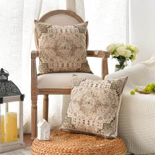 Artoid Mode Boho Bohemia Stil Vintage Beige Kissenbezüge 2er Set, 45×45 cm Saisonnal Zierkissenbezug Cushion Cover Couch Wohnzimmer Deko