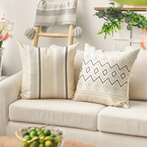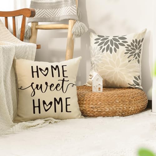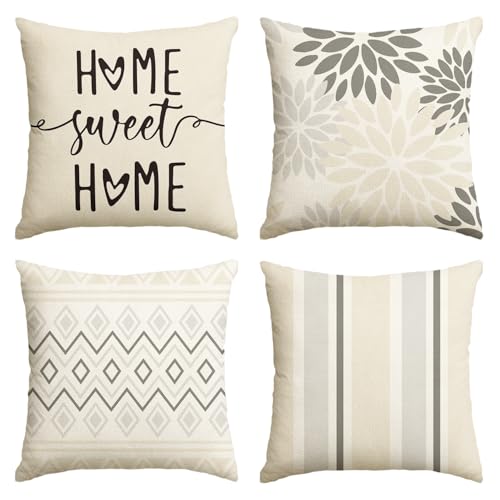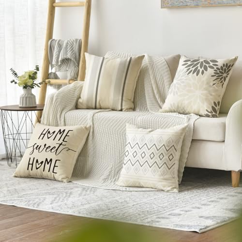 Artoid Mode Cream Weiß Dahlien Geometrisch Frühling Kissenbezüge 4er Set, 40×40 cm Zierkissenbezug Cushion Cover Couch Wohnzimmer Außenbereich Deko