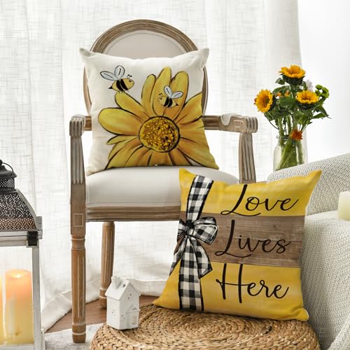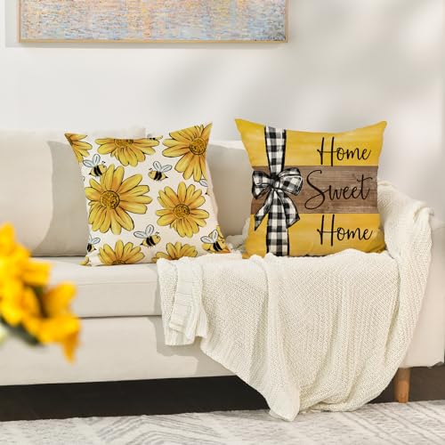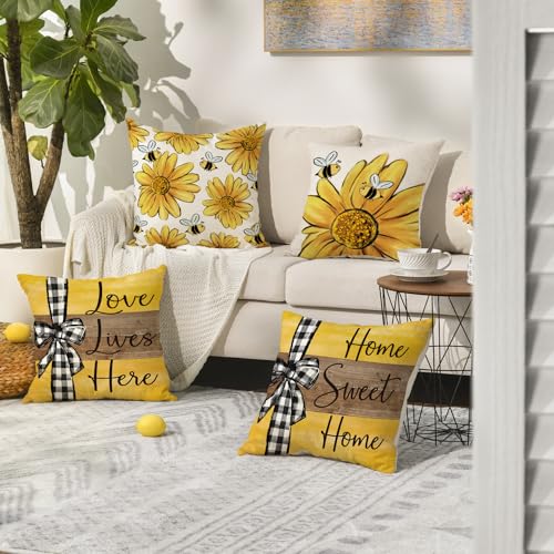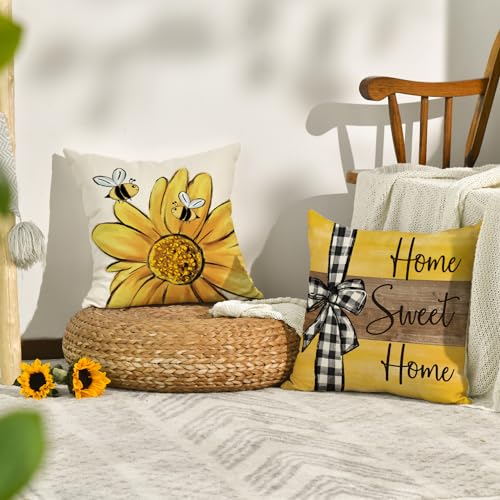 Artoid Mode Dielen Fliege Sonnenblumen Biene Sommer Kissenbezüge 4er Set, 45×45 cm Zierkissenbezug Cushion Cover Couch Deko