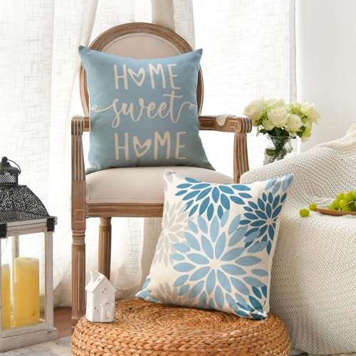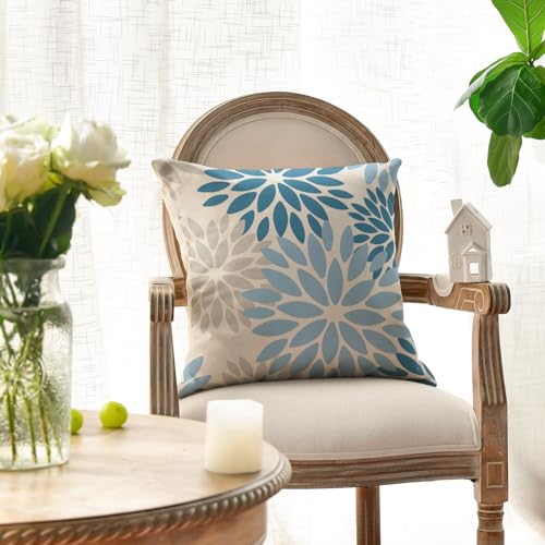 Artoid Mode Eisblau Dahlien Blumen Frühling Kissenbezüge 2er Set, 45×45 cm Zierkissenbezug Cushion Cover Couch Wohnzimmer Außenbereich Deko