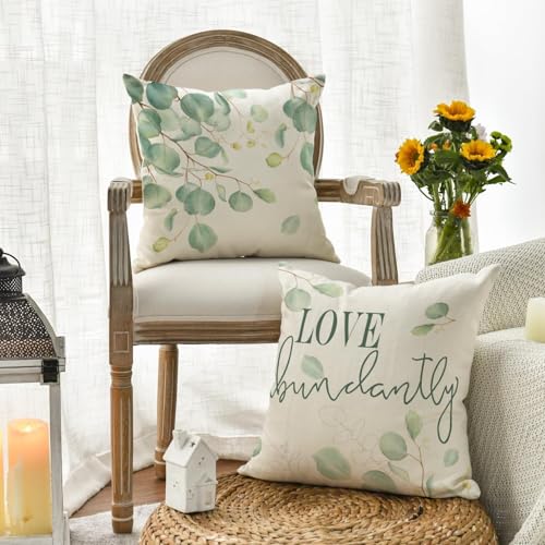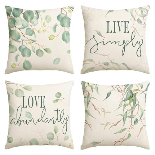 Artoid Mode Eukalyptus Live Simply Love Abundantly Frühling Kissenbezüge 4er Set, 45×45 cm Sommer Zierkissenbezug Couch Wohnzimmer Deko