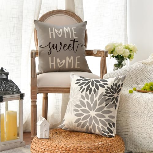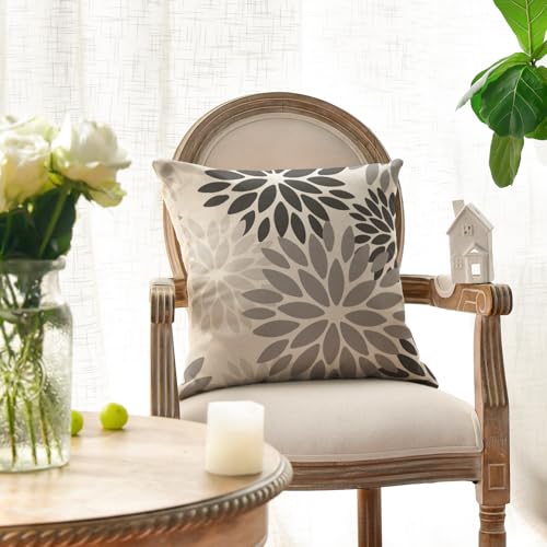 Artoid Mode Grau Dahlien Blumen Frühling Kissenbezüge 2er Set, 45×45 cm Zierkissenbezug Cushion Cover Couch Wohnzimmer Außenbereich Deko