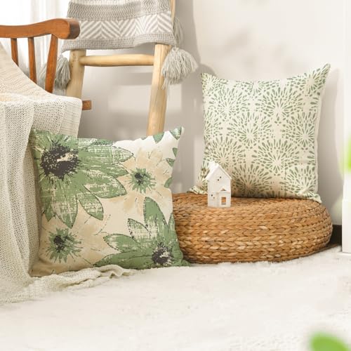 Artoid Mode Grün Retro Gänseblümchen Frühling Kissenbezüge 4er Set, 45×45 cm Saisonnal Zierkissenbezug Cushion Cover Couch Wohnzimmer Deko