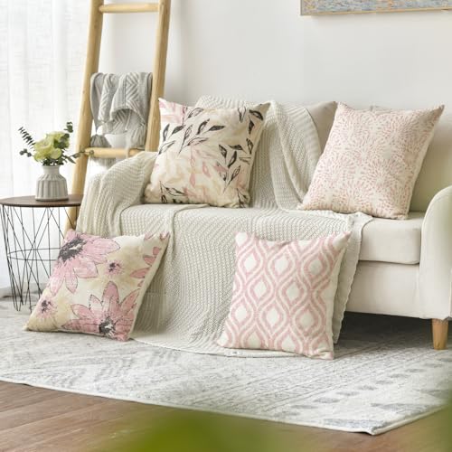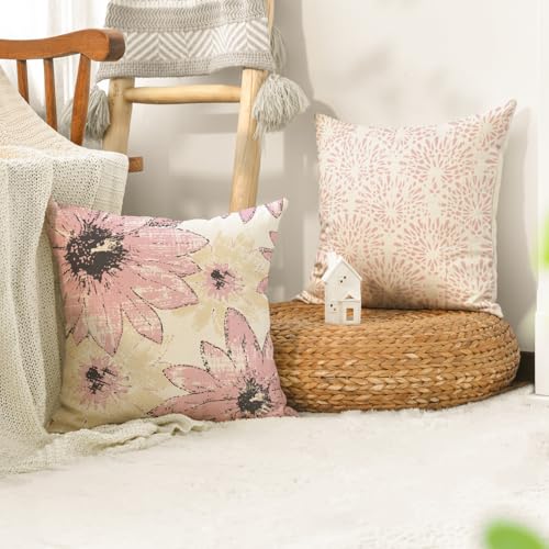 Artoid Mode Rosa Retro Gänseblümchen Frühling Kissenbezüge 4er Set, 45×45 cm Saisonnal Zierkissenbezug Cushion Cover Couch Wohnzimmer Deko