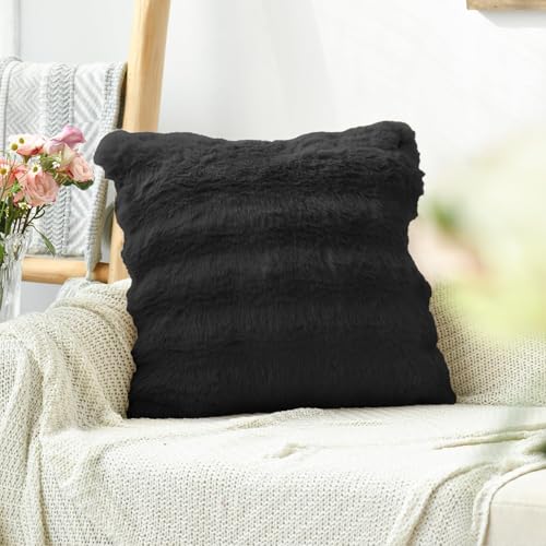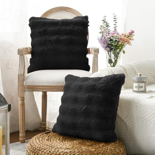 Artoid Mode Schwarz Weich Künstliche Pelz Blasen Puffy Kissenbezüge 2er Set, 45×45 cm Flauschig Plüsch Samt Zierkissenbezug Sofa Schlafzimmer Deko