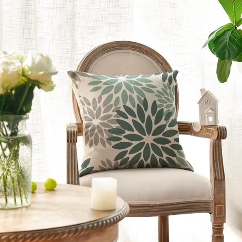 Artoid Mode Wassergrün Dahlien Blumen Kissenbezüge 2er Set, 45×45 cm Frühling Zierkissenbezug Cushion Cover Couch Wohnzimmer Außenbereich Deko