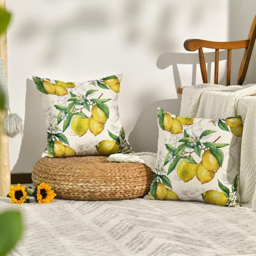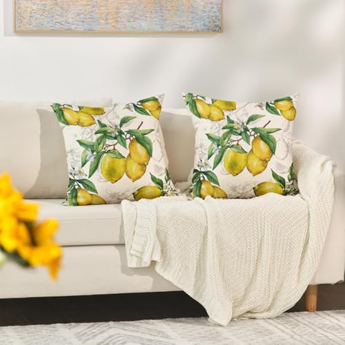 Artoid Mode Zitrone Blätter Blumen Sommer Kissenbezug 2er Set, 45×45 cm Frühling Saisonnal Zierkissenbezug Cushion Cover Couch Wohnzimmer Deko