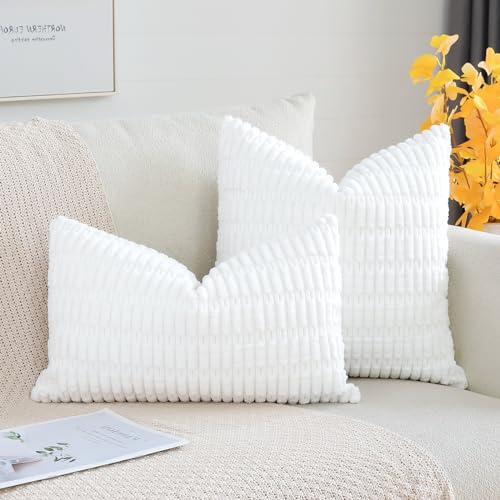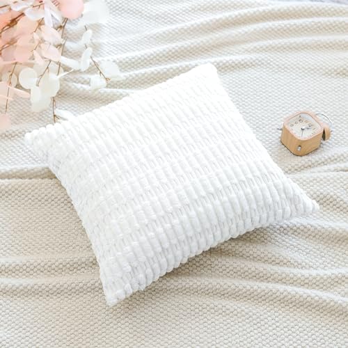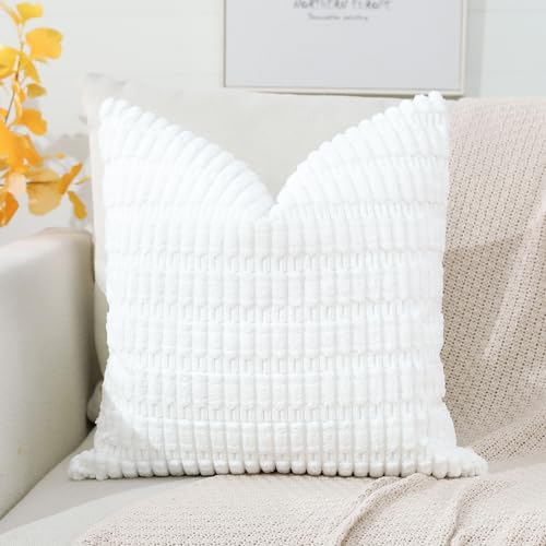 Artscope 1er Set Boho Gestreifte Kissenbezug Einfarbig Zierkissenbezug Dekokissen Sofakissen 45×45 cm Kissenhülle Weiche Couchkissen für Sofa Wohnzimmer Schlafzimmer Dekor, Reines Weiß