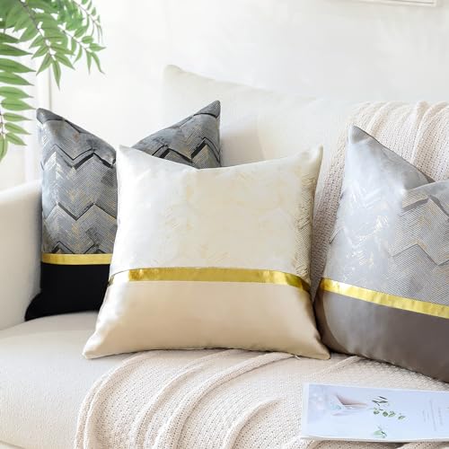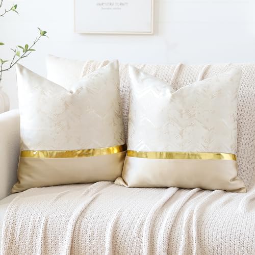 Artscope 2er Set Kissenbezug für Sofa Auto Schlafzimmer Luxuriöser Moderne Minimalist Goldenen Ledernähten Wellenstreifen Dekokissen Kissenhülle Kissen Fall 45x45cm (Beige)