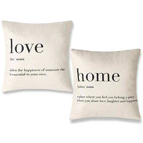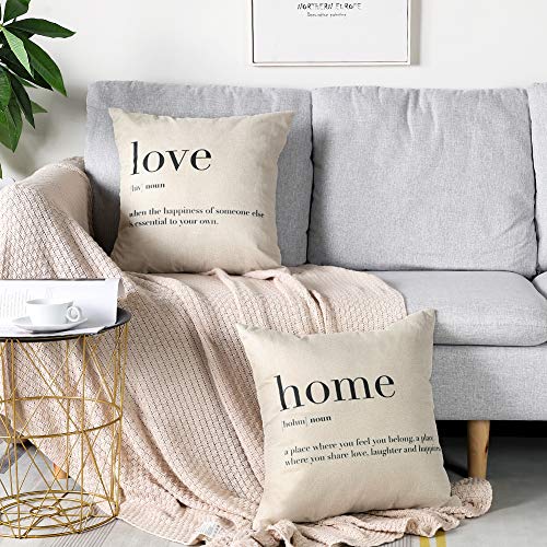 Artscope 2er Set Kissenbezug Love und Home Dekorative Kissenhülle Baumwolle Leinen Druckmuster Kissenbezüge Set Kissen Fall für Sofa Auto Schlafzimmer 18×18 Inch 45x45cm