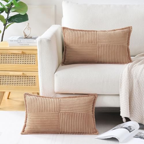 Artscope 2er Set Kordsamt Kissenbezüge Samtkissen Weich Dekokissen Dekorativ Kissenbezug Modern Kissenhülle Umwickelte Kante Sofakissen für Wohnzimmer Schlafzimmer Khaki, 30x50cm