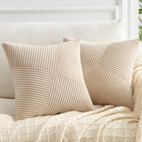 Artscope 2er Set Kordsamt Kissenbezüge Samtkissen Weich Dekokissen Dekorativ Kissenbezug Modern Kissenhülle Umwickelte Kante Sofakissen für Wohnzimmer Schlafzimmer Khaki, 40x40cm
