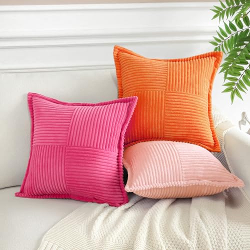 Artscope 2er Set Kordsamt Kissenbezüge Samtkissen Weich Dekokissen Dekorativ Kissenbezug Modern Kissenhülle Umwickelte Kante Sofakissen für Wohnzimmer Schlafzimmer Rosa, 40x40cm