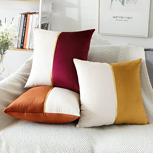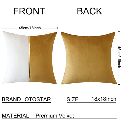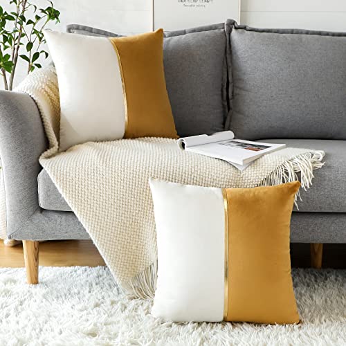 Artscope 2er Set Samt Kissenbezug für Sofa Auto Schlafzimmer Luxuriöser Moderne Minimalist Goldenen Ledernähten Dekokissen Kissenhülle Kissen Fall 45x45cm (Golden und Weiß)