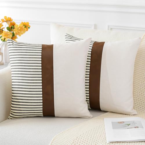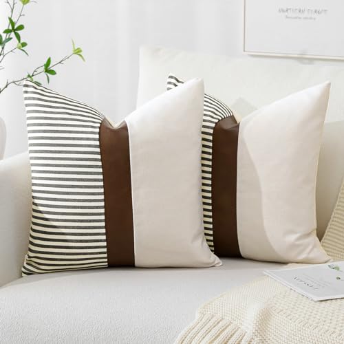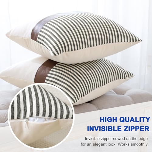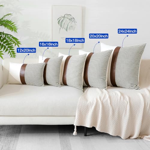 ▶【Trendy Design】Gestreiftes Patchwork-Muster. die Leder-Aussprache-Streifen auf diesem stilvollen dekorativen kissenbezüge. dieses Leder-Baumwoll-Split-Design verleiht Ihrem Sofa oder Bett den nötigen Pepp.Hingucker in Ihrem Schlafzimmer, Wohnzimmer.