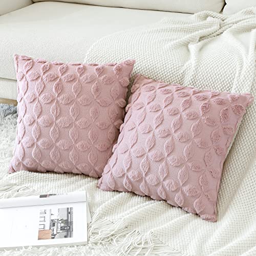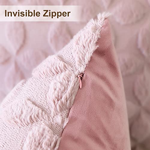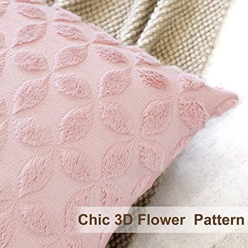 Artscope 2er Set Wolle Kissenbezüge Weicher Plüsch Kurzer Wollsamt Dekokissenbezuge Luxuriöses Sofakissen Boho Kissenhülle für Sofa Schlafzimmer Blumenmuster Rosa, 50x50cm