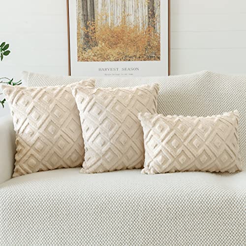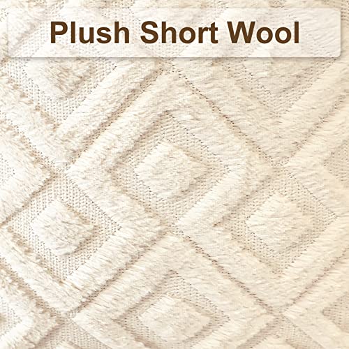 Artscope 2er Set Wolle Kissenbezüge Weicher Plüsch Kurzer Wollsamt Dekokissenbezuge Luxuriöses Sofakissen Boho Kissenhülle für Sofa Schlafzimmer Geometrische Creme Beige, 40x40cm