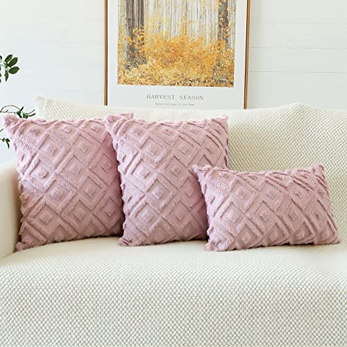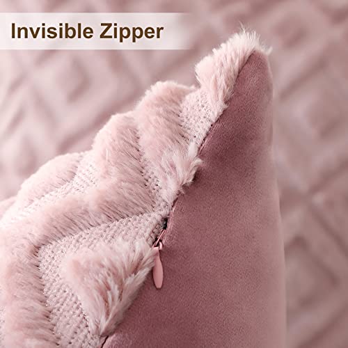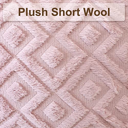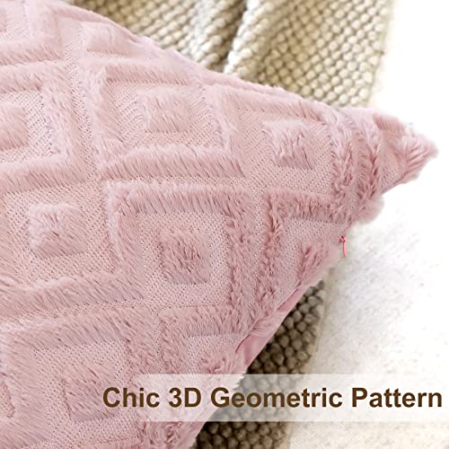Artscope 2er Set Wolle Kissenbezüge Weicher Plüsch Kurzer Wollsamt Dekokissenbezuge Luxuriöses Sofakissen Boho Kissenhülle für Sofa Schlafzimmer Geometrische Rosa, 30x50cm