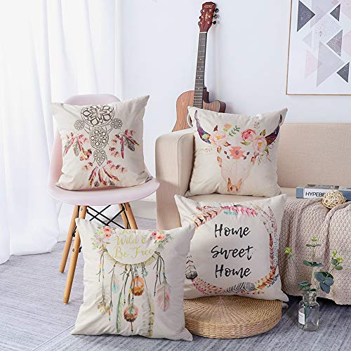 ★ WASCHPFLEGE – In kaltem Wasser gewaschen oder maschinenwaschbar. Set mit 4 Kissenbezügen zur Dekoration Ihres Zuhauses. (Kissen sind nicht im Lieferumfang enthalten!)