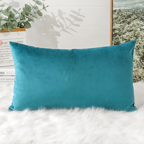 Artscope Samt Kissenbezug Kissenhülle Dekorative Dekokissen Sofakissen Lendenkissen Wurfkissenbezug Sofa Schlafzimmer 40x60cm Blaugrün