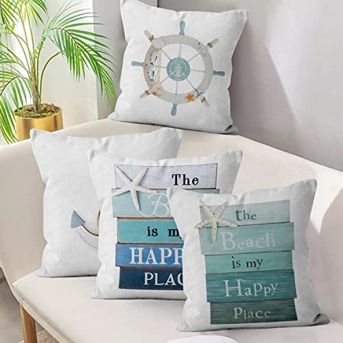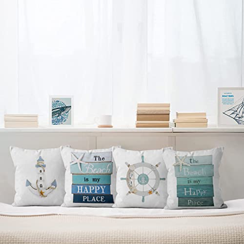 ❤Hochwertige Materialien–Der ASDCXZ Maritime Kissenbezug besteht aus 100% hochwertiger Polyesterfaser, die weich, bequem und atmungsaktiv ist, keinen eigenartigen Geruch hat und kinder- und haustierfreundlich ist. Das Leinenimitat Oberfläche nicht leicht knittert, und hat eine dicke Textur, die langlebig ist und nicht leicht ausgewaschen oder ausfranst. Tipps: Die Grafiken sind Gewiss auf der Vorderseite gedruckt, es gibt keinen Druckerzeugnis auf der Abseite und keinen Polsterkern oder Polsterung.