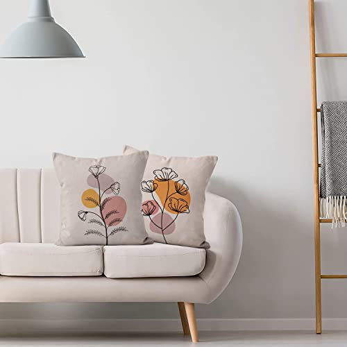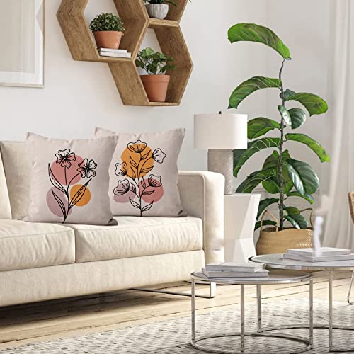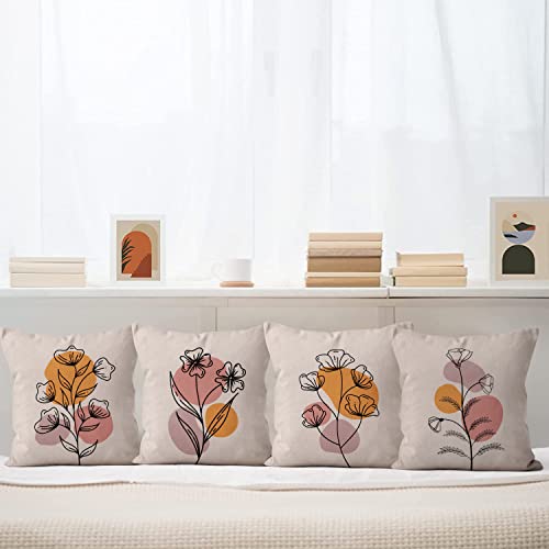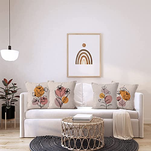 ASDCXZ Boho Kissenbezug 40×40 cm 4er Set, Abstrakt Boho Style Blume Blätter Rose Sofa Kissen Bezug Dekokissen Kissenbezüge Kissenhülle Waschbar Polyester Flachs Textil Outdoor Polster Kopfkissenbezug