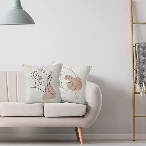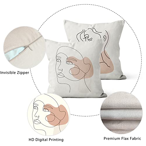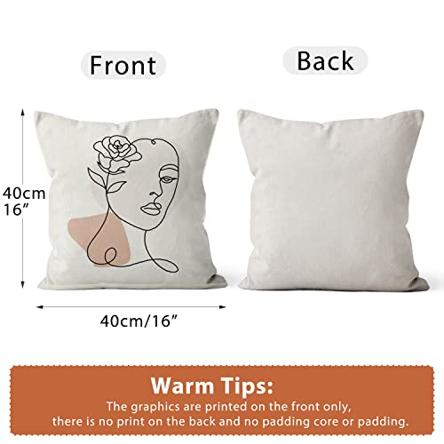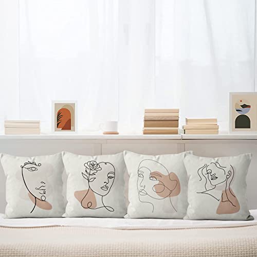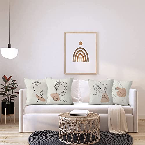 ASDCXZ Boho Kissenbezug 40×40 cm 4er Set, Abstrakt Boho Style Mädchen Gesicht Sofa Kissen Bezug Dekokissen Kissenbezüge Kissenhülle Waschbar Polyester Flachs Textil Outdoor Polster Kopfkissenbezug