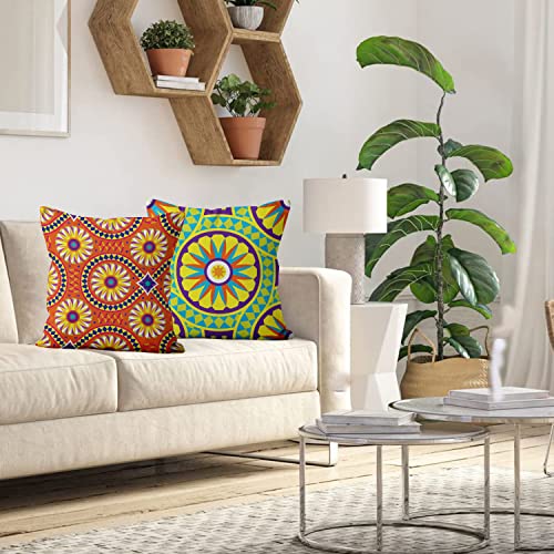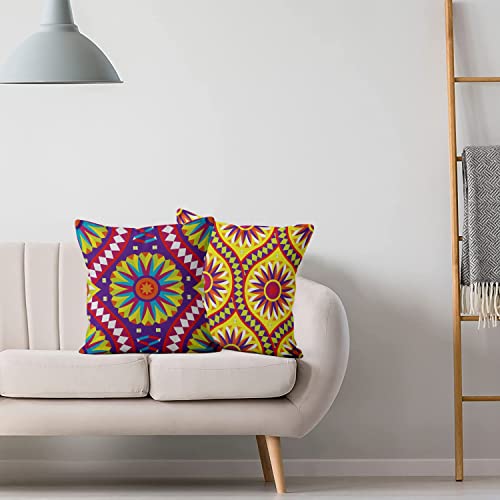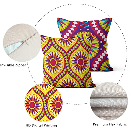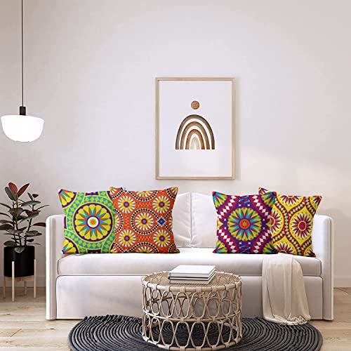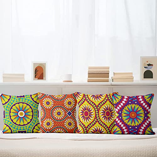 ASDCXZ Boho Kissenbezug 40×40 cm 4er Set, Boho Geometrisch Datura Blume Bunt Sofa Kissen Bezug Dekokissen Kissenbezüge Kissenhülle Waschbar Polyester Flachs Textil Outdoor Polster Kopfkissenbezug