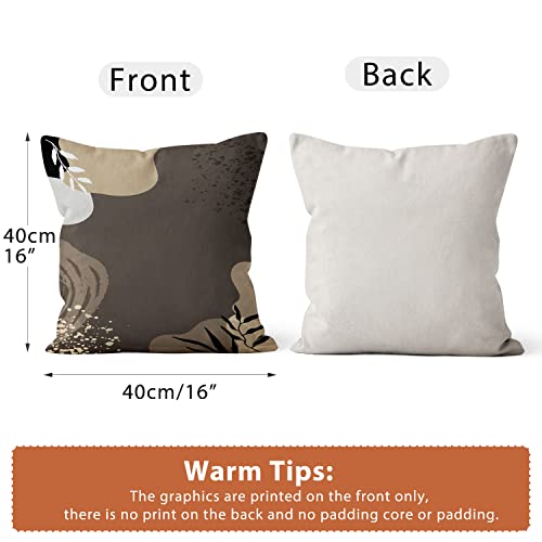 ASDCXZ Boho Kissenbezug 40×40 cm 4er Set Braun, Modern Abstrakt Kunst Boho Style Blätter Sofa Dekokissen Kissenbezüge Kissenhülle Waschbar Polyester Flachs Textil Outdoor Polster Kopfkissenbezug