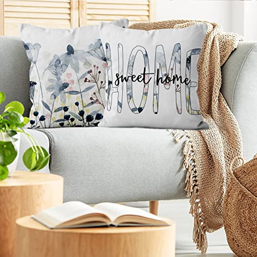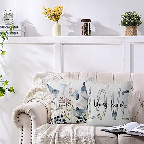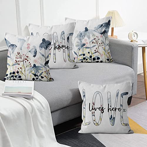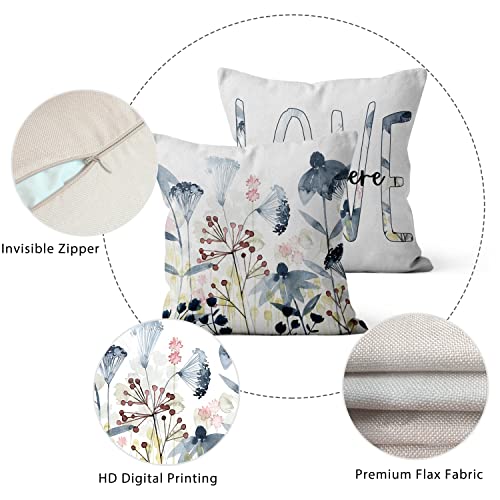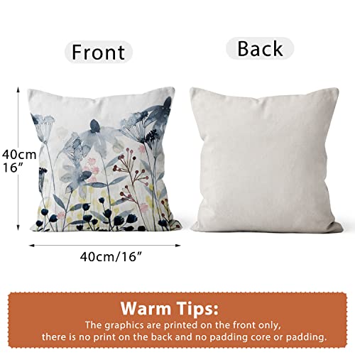 ASDCXZ Frühling Kissenbezug 40×40 cm 4er Set, Frisch Aquarell Blume Muster Blau Sofa Dekokissen Kissenbezüge Kissenhülle Waschbar Polyester Flachs Textil Outdoor Polster Kopfkissenbezug Kissen Bezug