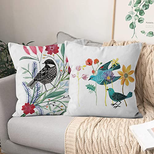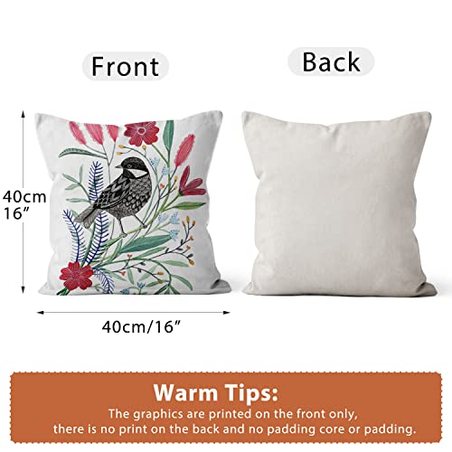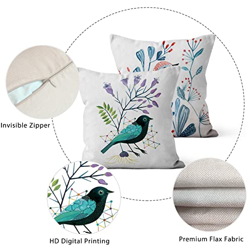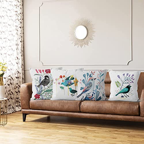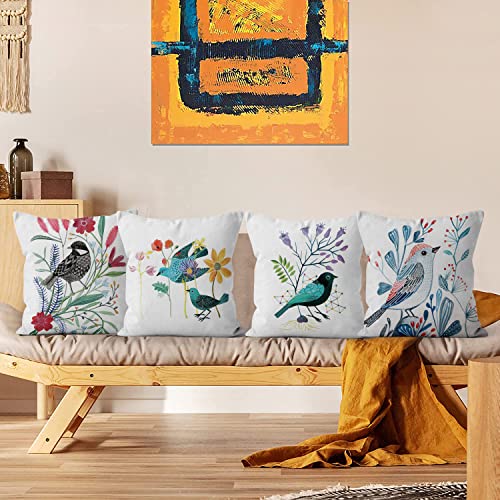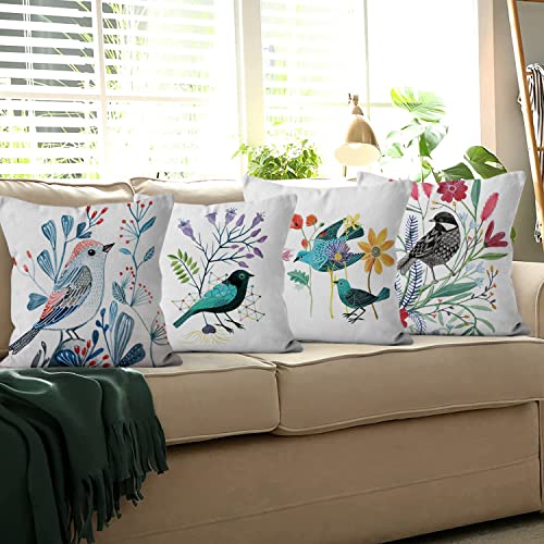 ASDCXZ Frühling Kissenbezug 40×40 cm 4er Set, Frisch Blume Vogel Muster Sofa Kissen Dekokissen Kissenbezüge Kissenhülle Waschbar Polyester Flachs Textil Outdoor Polster Kopfkissenbezug Kissen Bezug