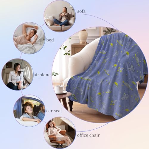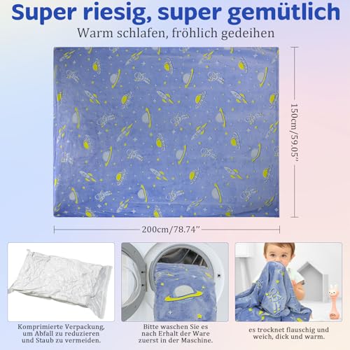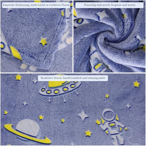 Astronauten Decke Leuchtet Im Dunkeln Junge, Blaues Warm Weiche Kinder Kuscheldecke Baby, 150×200 Wohndecke, Sofadecke Kuschelig