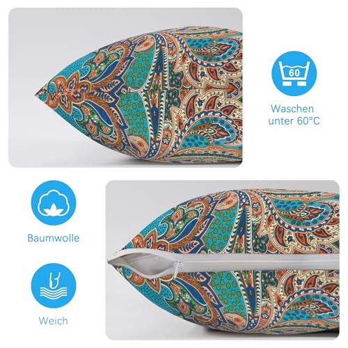 ATsense 2er Set Kissenbezug 40 x 60 cm, 100% Baumwolle, Dunkelblau Bunt Muster Kopfkissenbezug mit Reißverschluss, Superweicher Premium und Hypoallergen, ÖkoTex Super Bequemer Kissenhülle(Böhmen)