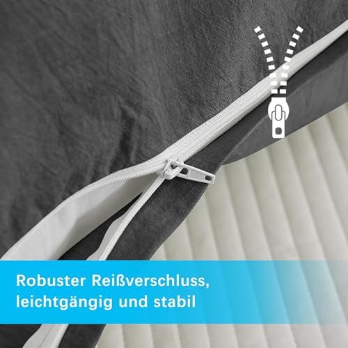 ATsense 2er Set Kissenbezug 40×40 cm – 100% Gewaschene Baumwolle, Dunkelgrau Kopfkissenbezug mit Reißverschluss, Oeko-TEX Zertifiziert Weich, Nicht Lleicht Verformbar