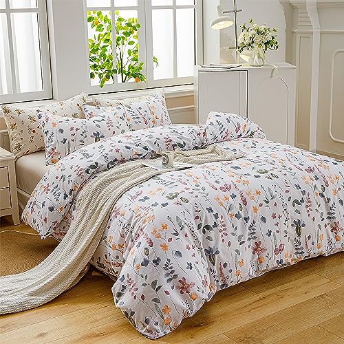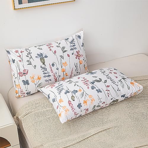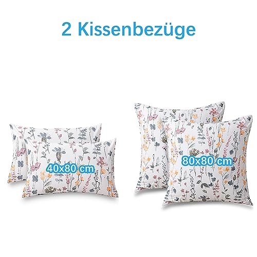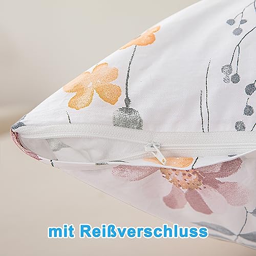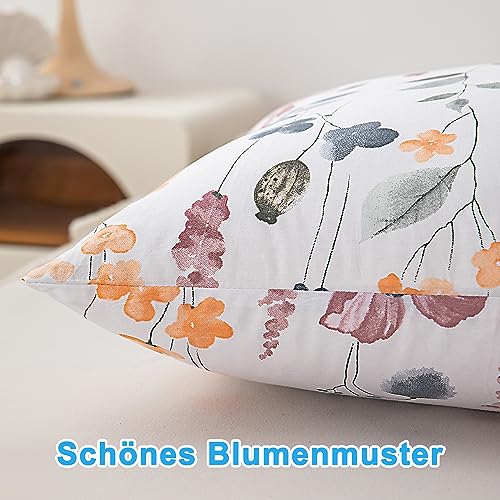 ATsense Kissenbezug 80 x 40 cm, 2 Stück – 2er Set 100% Baumwolle, Bunt Pflanzen Blumen Muster Kopfkissenbezug mit Reißverschluss, ÖkoTex Zertifiziert Super Weicher und Bequemer Kissenhülle